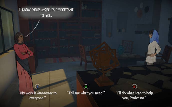 And in my new playthrough, she's almost the opposite of all these things (except that last one), and the narrative is shifting accordingly. Heaven's Vault is not only impressive in the sheer scope of its histories, but in how meaningful its decisions feel. Heaven's Vault is a game about not taking the narrative of history spoonfed to us, but about challenging it and forging our own path. Even with any game-feel qualms I may have, it is undoubtedly successful in that right.